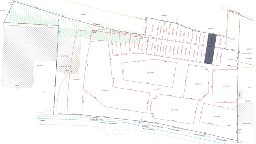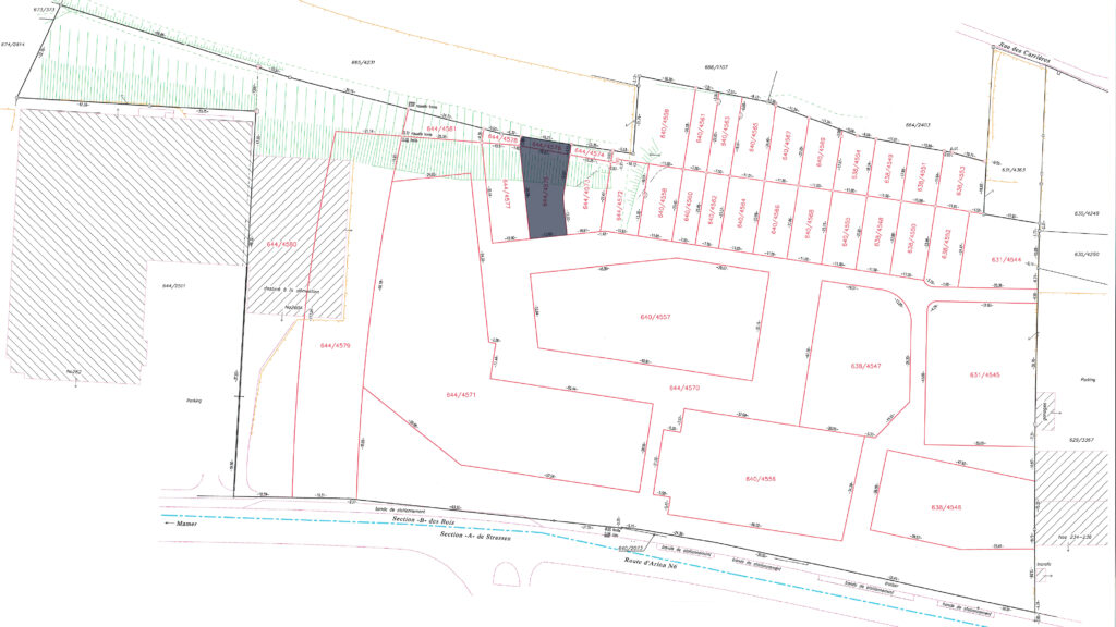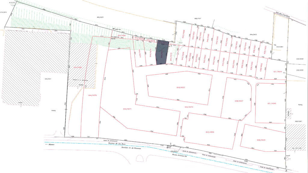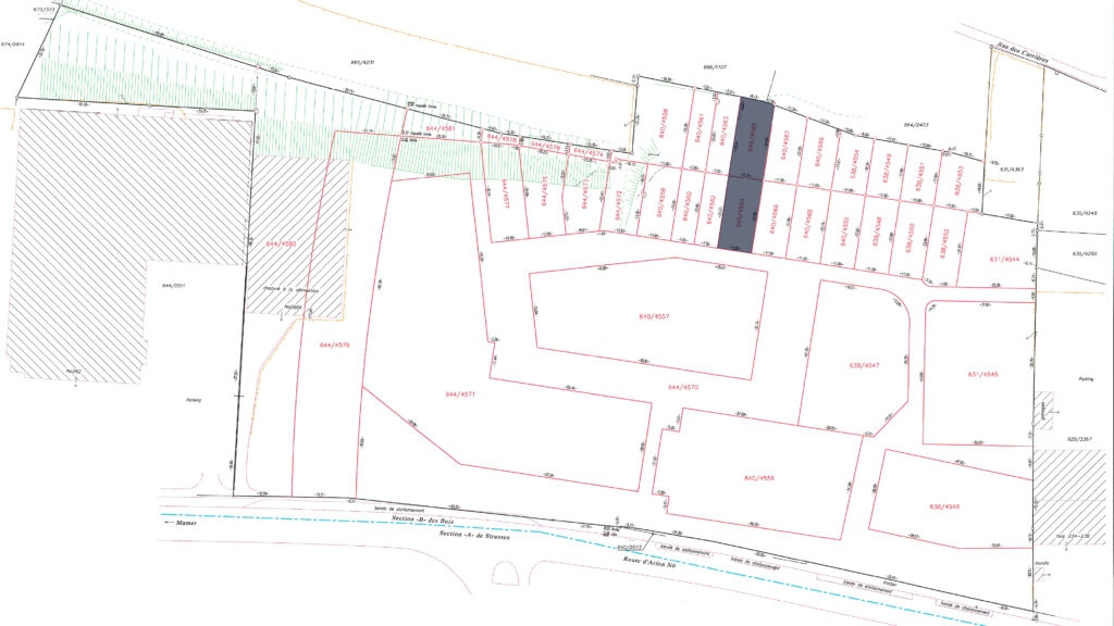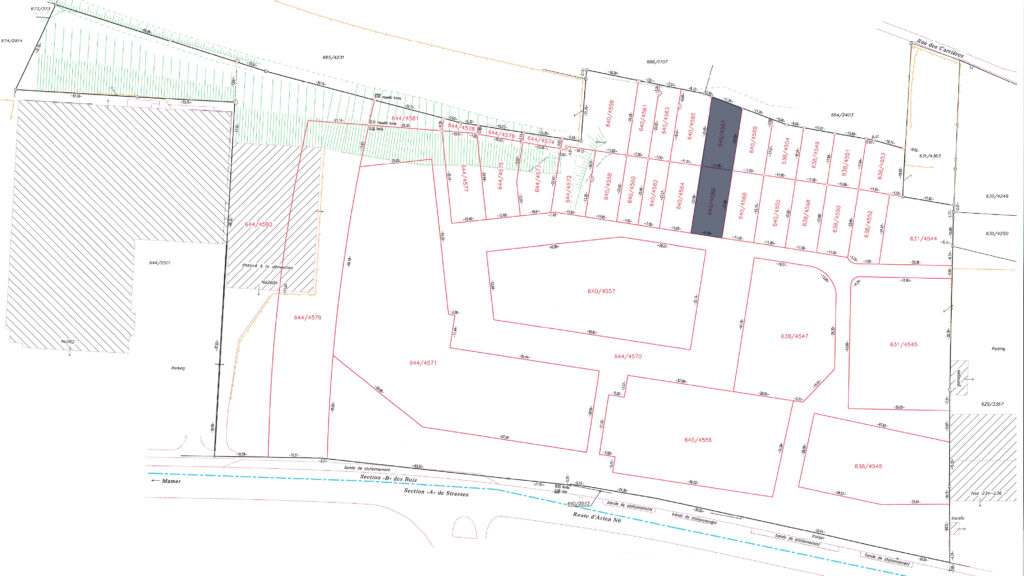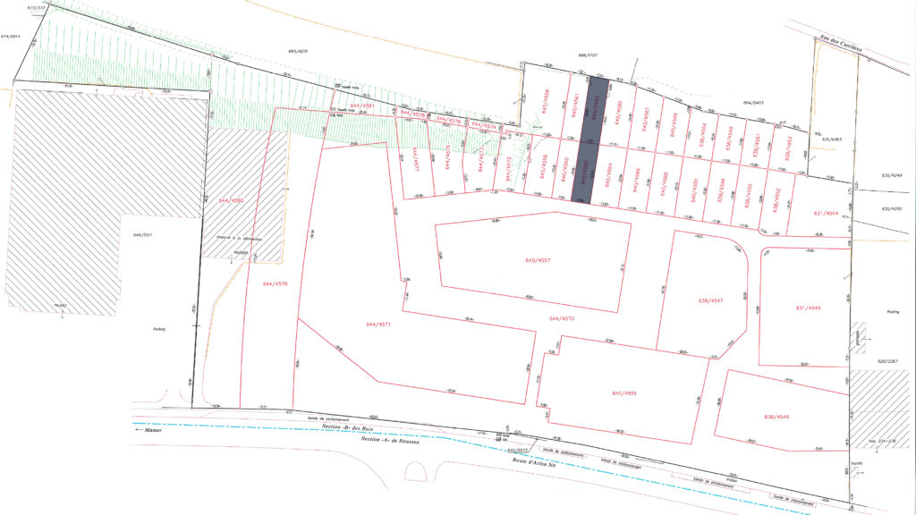 7.39 ares of land in total, including 2.57 ares of building land (644/4572) and 4.82 ares of garden (640/4559) in the future residential district of ‘Gaaschtbierg’ in Strassen. This land, which is free of any building contracts, is ideally located close to all amenities.