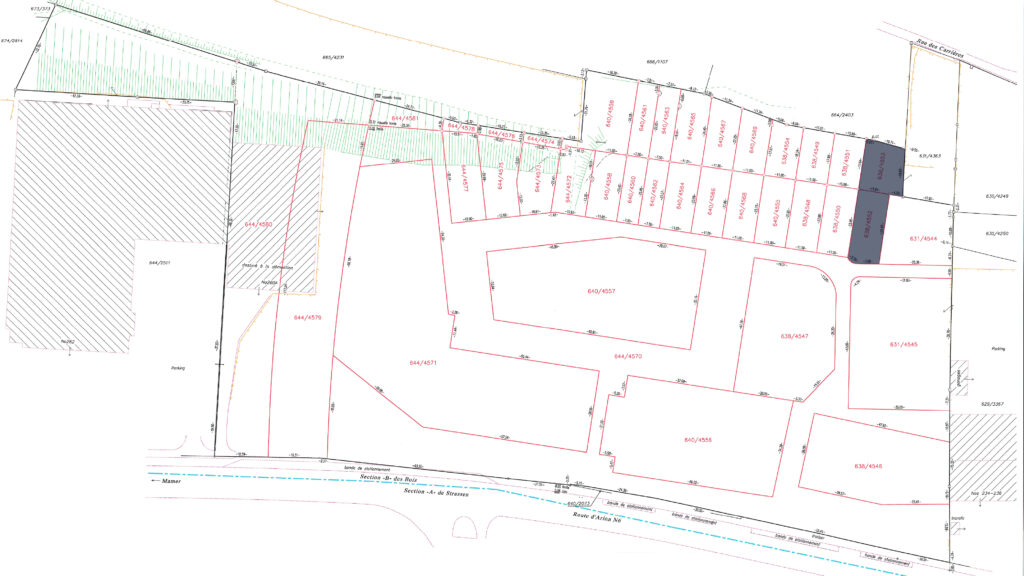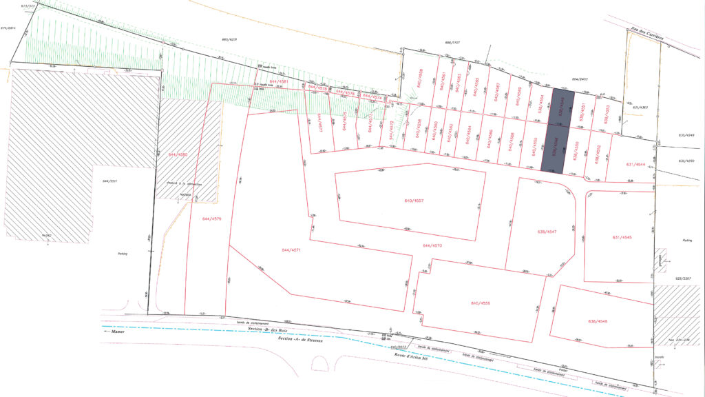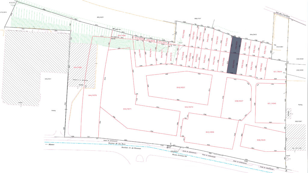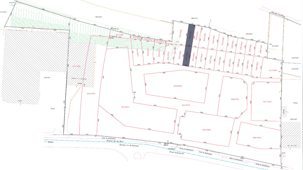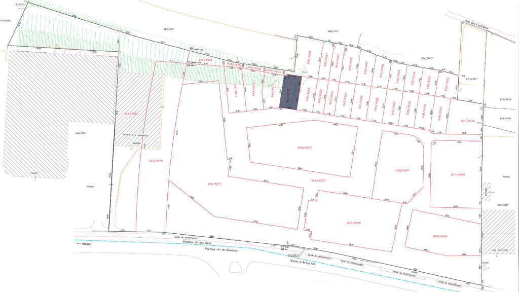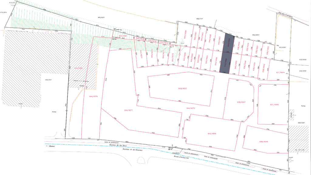7.39 ares of land in total, including 2.57 ares of building land (644/4572) and 4.82 ares of garden (640/4559) in the future residential district of ‘Gaaschtbierg’ in Strassen. This land, which is free of any building contracts, is ideally located close to all amenities.