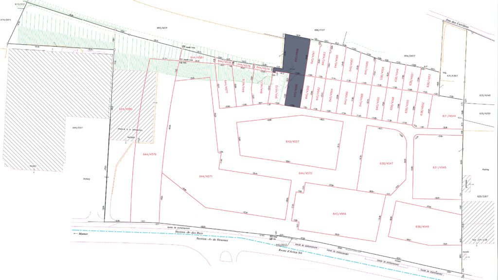 4.9 ares plot of land, including 2.61 ares of buildable land (640/4568) and 2.29 ares of garden (640/4569) in the future residential district of ‘Gaaschtbierg’ in Strassen. This plot, which is free of any building contracts, is ideally located close to all amenities.