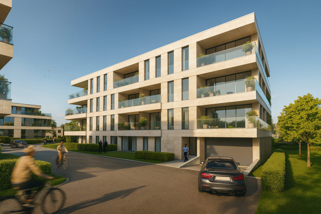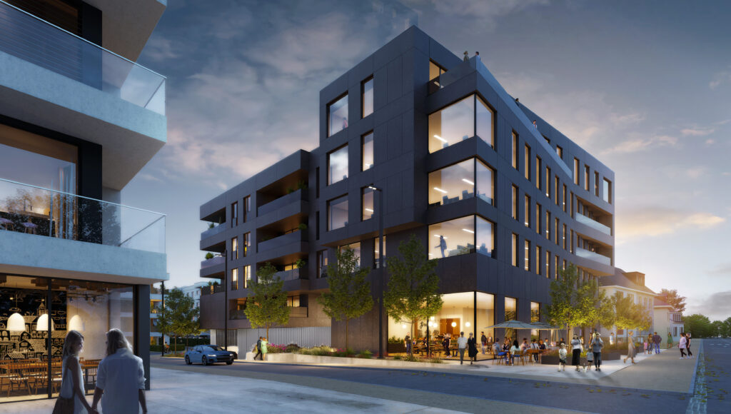The KIEM development offers a well-balanced program integrated into an existing and dynamic urban environment. It is designed as a modern living space, prioritizing accessibility, proximity, and the harmonious integration of residential functions and economic activities.