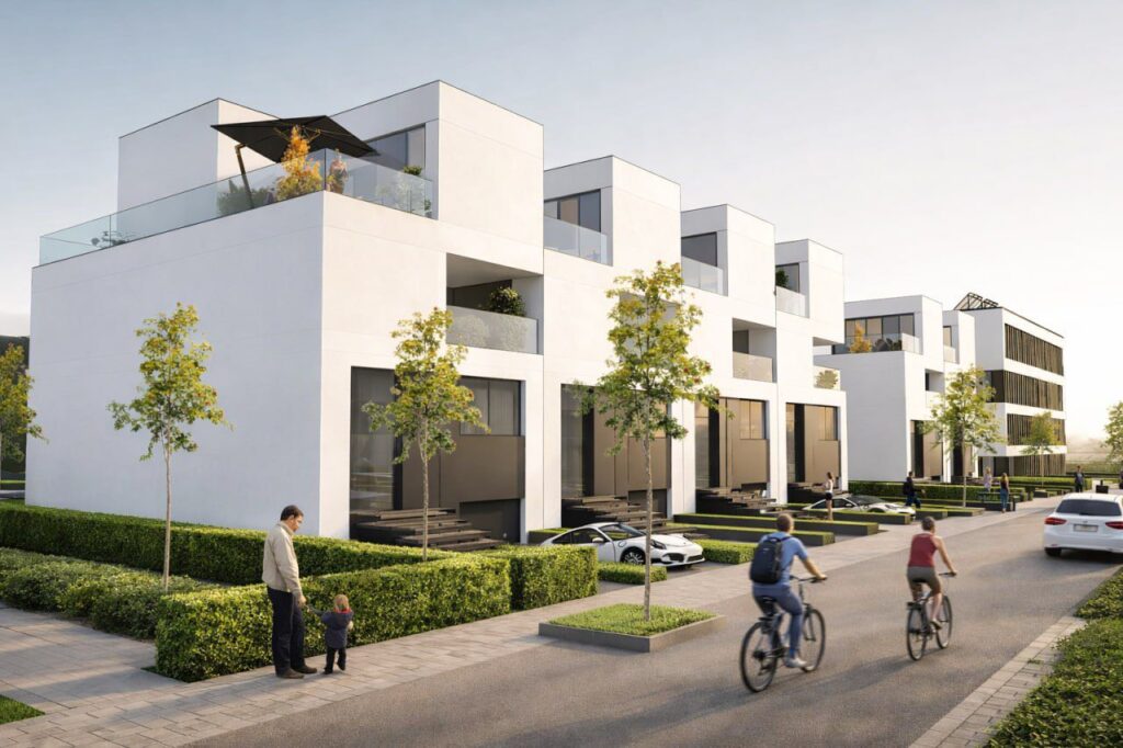 The town offers a practical lifestyle with everything close at hand — public transport, sports facilities, green areas and daily services — making it a smart choice for those seeking both calm and connectivity.