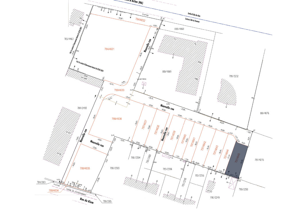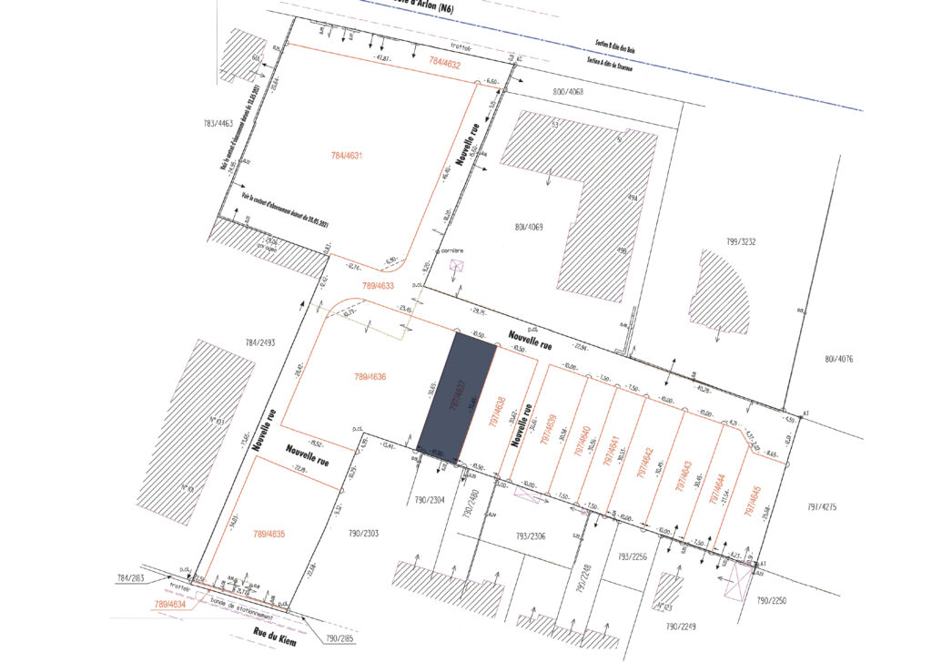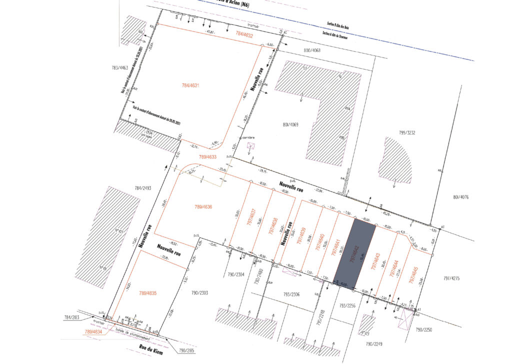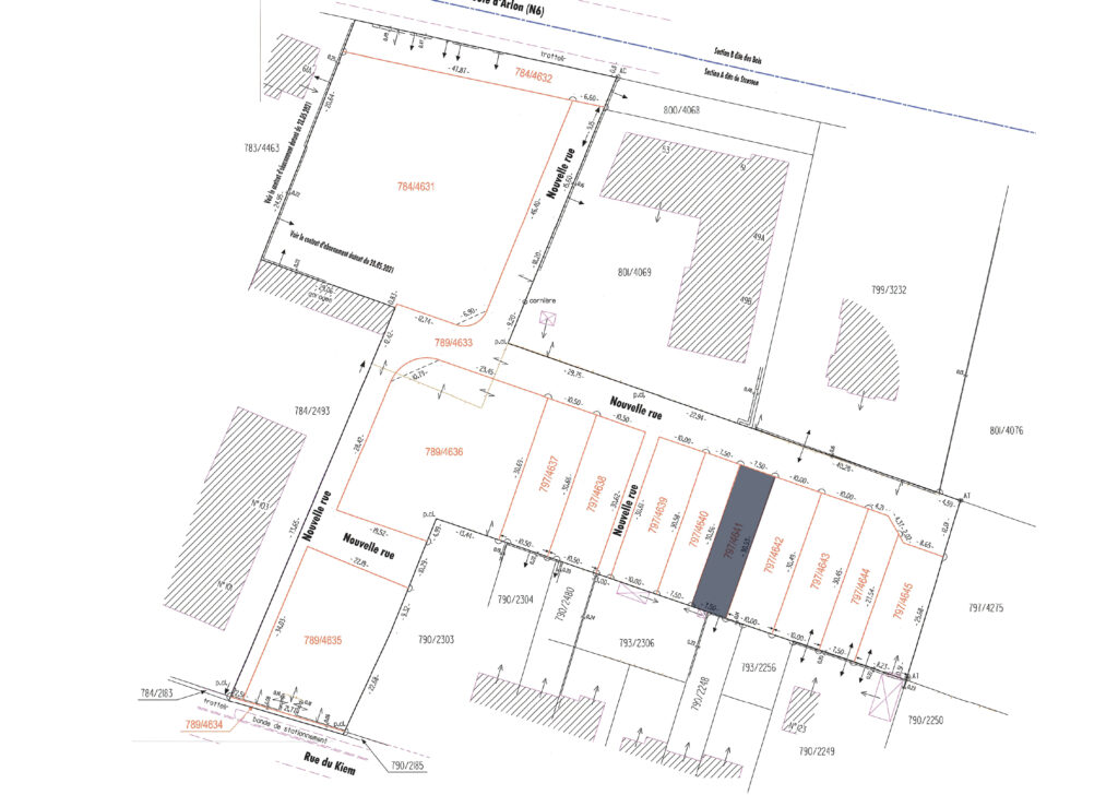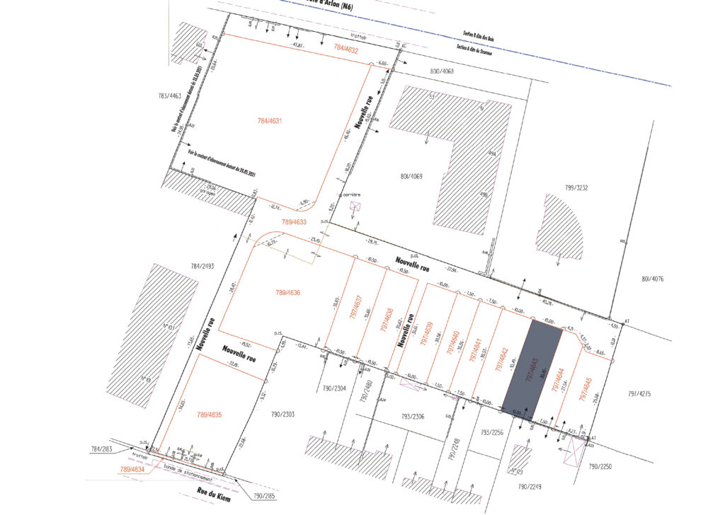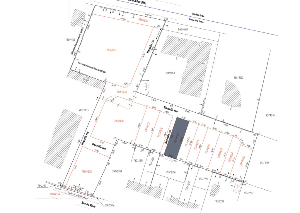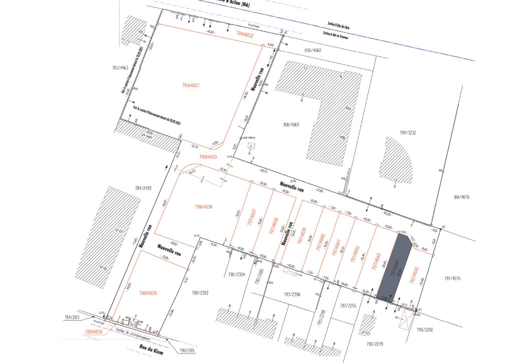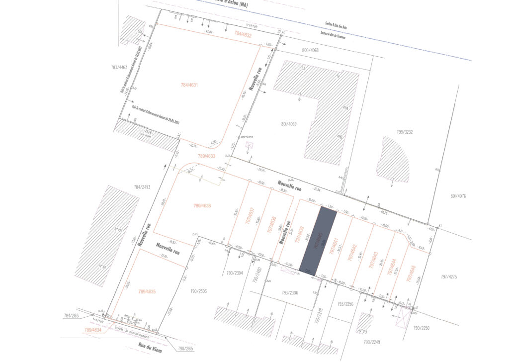 Terrain à bâtir (797/4643) viabilisé, d’une superficie de 3,05 ares, situé dans le futur quartier résidentiel « KIEM » à Strassen. Ce terrain, libre de tout contrat de construction, bénéficie d’un emplacement idéal à proximité de toutes les commodités.