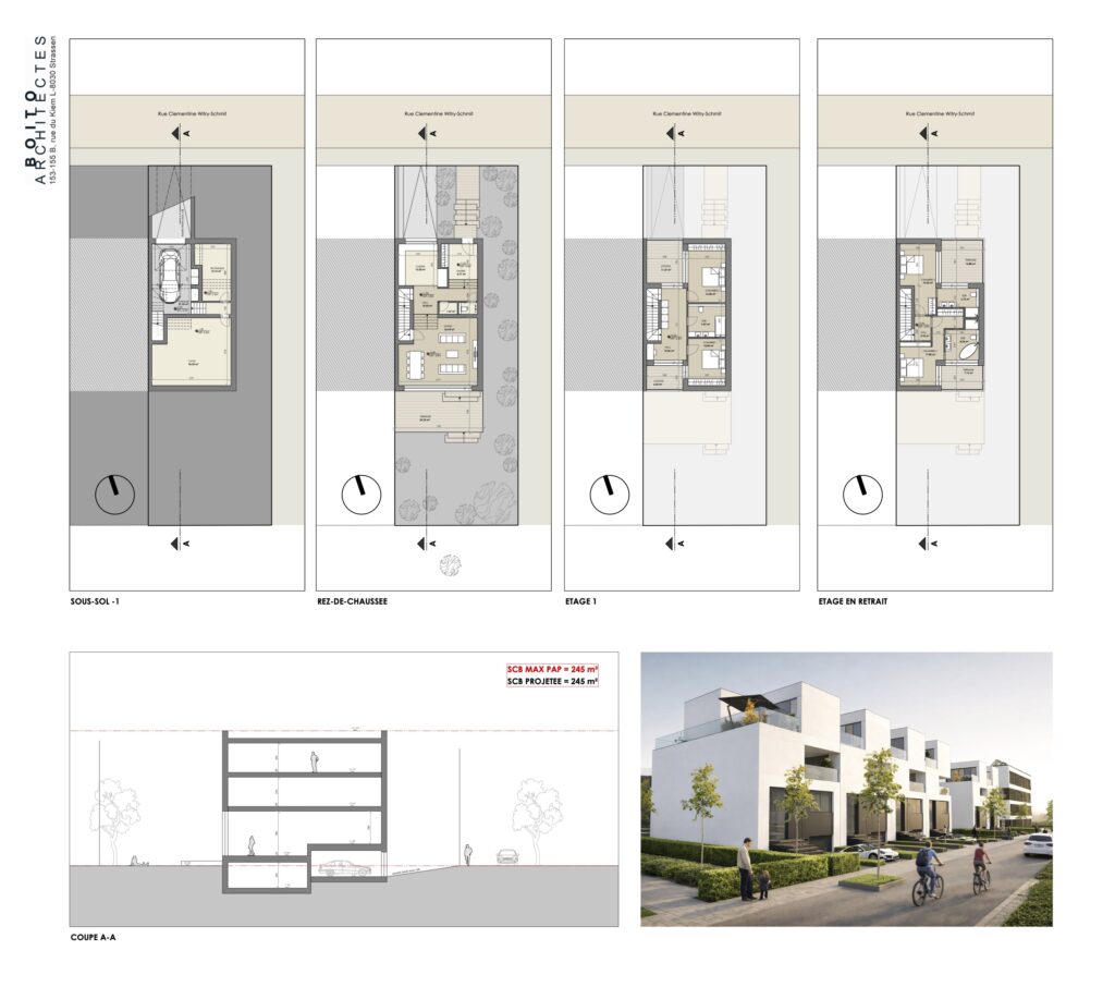 Le second lotissement – Gaaschtbierg – d’une superficie de 33 000 m2, constitue l’un des développement les plus significatifs de Strassen. Il se distingue par sa densité optimisée, une présence végétale généreuse et une articulation subtile entre habitat, services et espaces naturels.